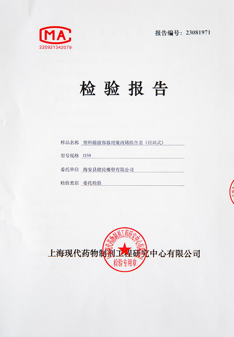 塑料輸液容器用聚丙烯組合蓋 (拉環式)檢驗報告