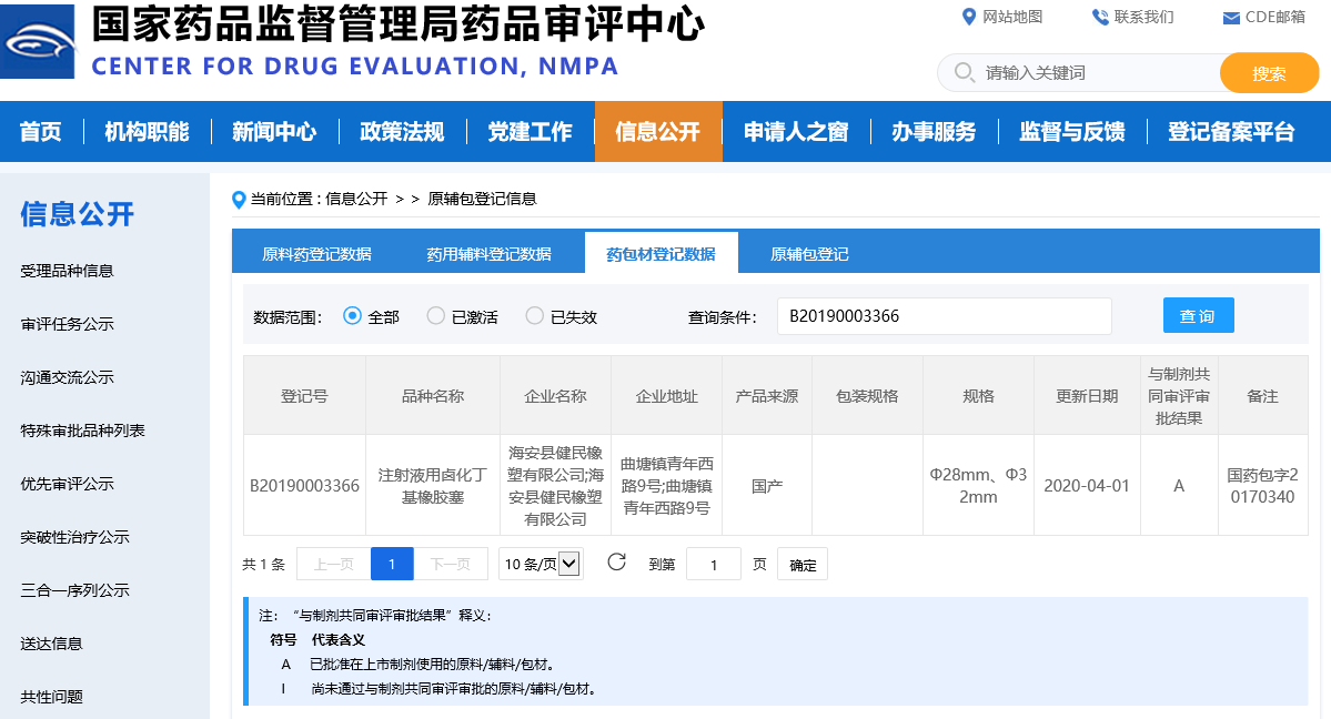>> 注射液用鹵化丁基橡膠塞 信息公示